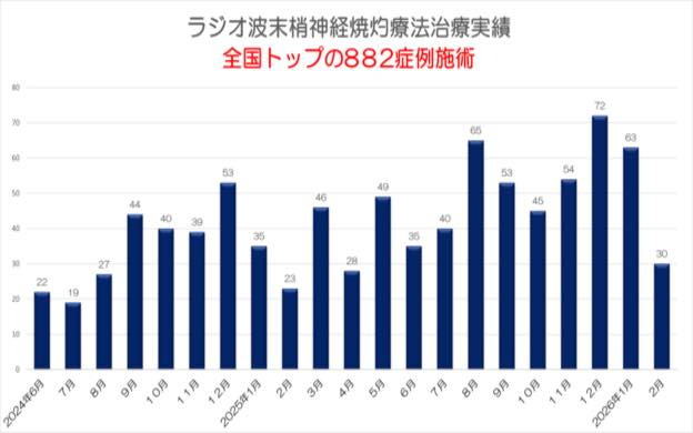 松岡理事長によるラジオ波末梢神経焼灼療法の手術件数が、2026年2月末時点で882症例となりました。