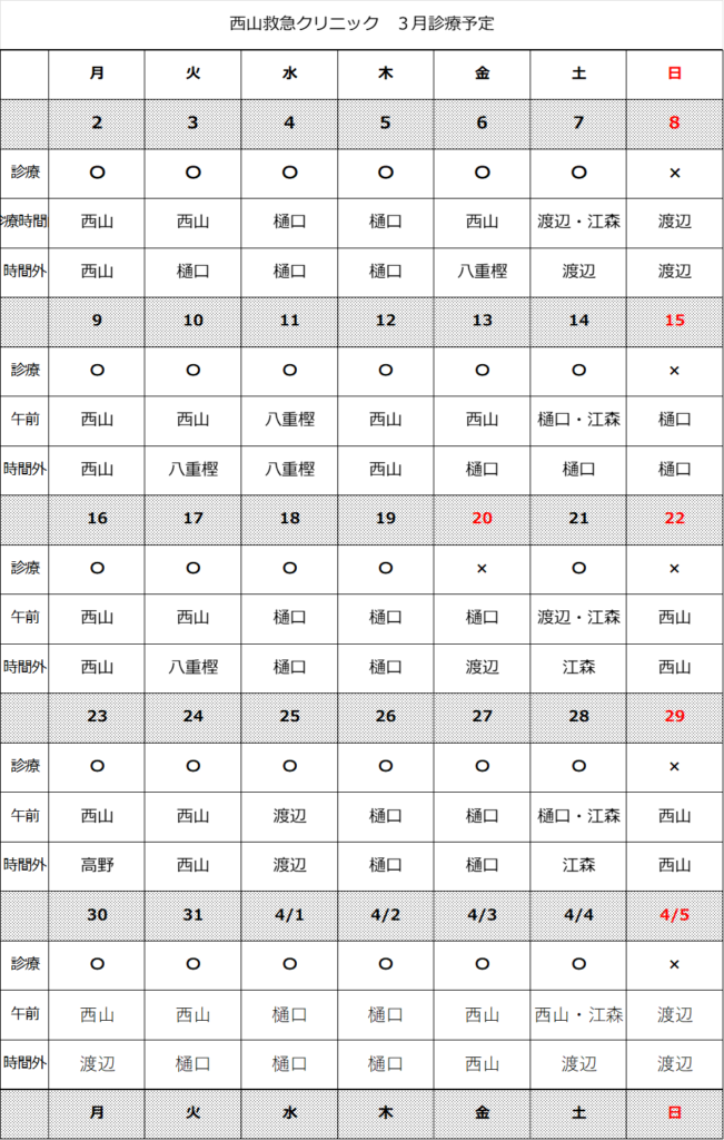 3月診療予定